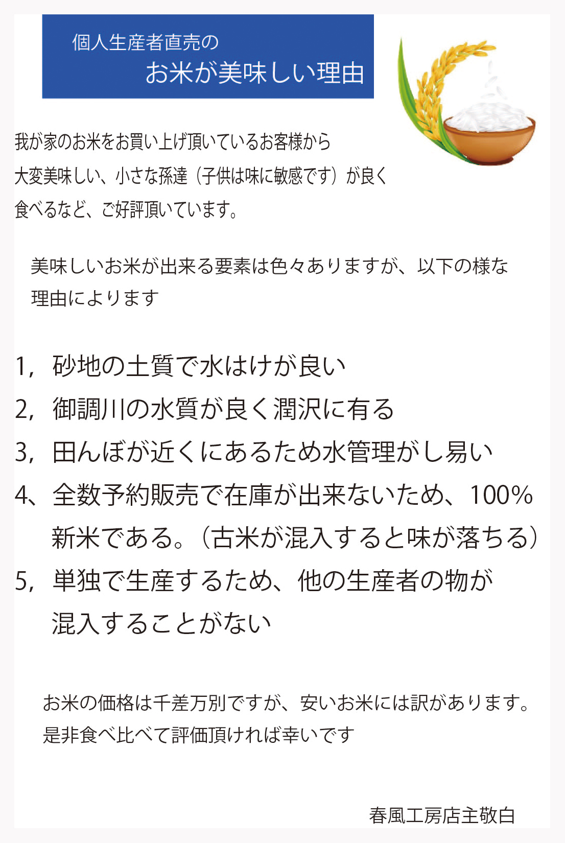 2024年産米 完売致しました。次年度もよろしくお願いします。